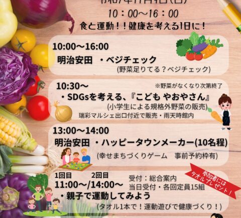 11月9日(日)健活フェアにて小学生のみなさんと規格外野菜の販売を行います。 玉ねぎ・人参・長ネギ・里芋の販売を行いますので、是非お買い求め…