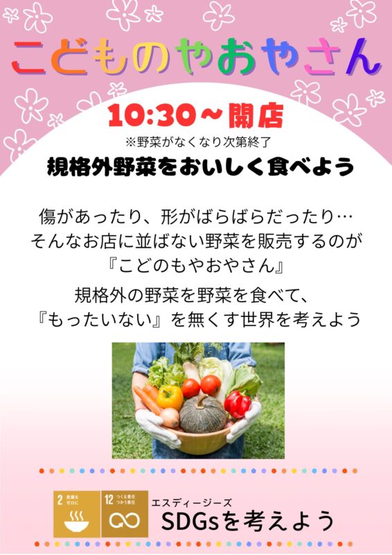 11月9日(日)健活フェアにて小学生のみなさんと規格外野菜の販売を行います。