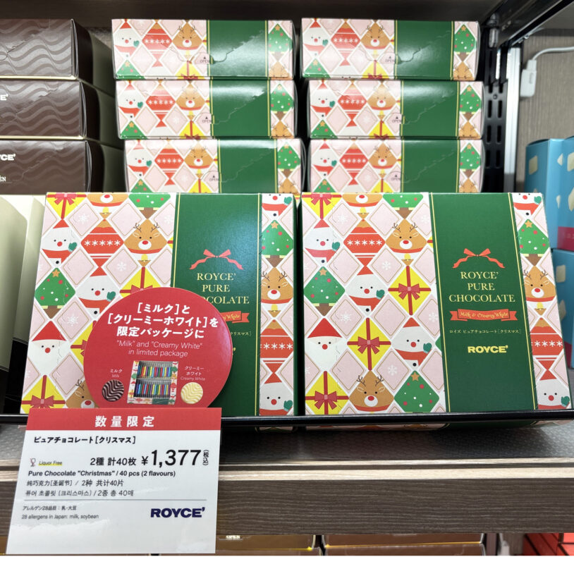 お知らせ 2025/11/08 🎅ROYCEチョコレートショップ🎄 ROYCEチョコレートショップより季節限定商品の画像が届きました💕 季節限定商品は非常に人気があり、道の駅KOKOくろべに出店時には 売り切れの商品もあるかもしれませんが、お楽しみに🎄💕