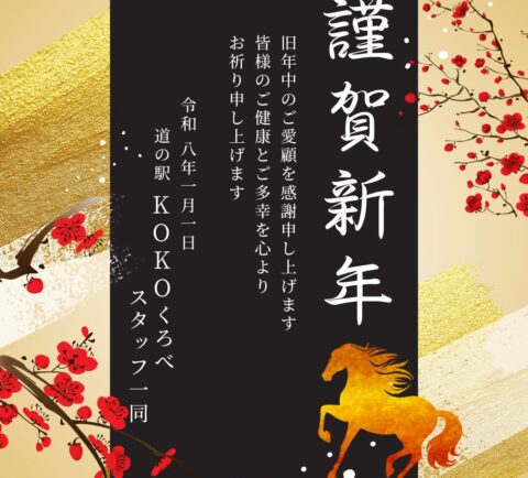 皆様、明けましておめでとうございます。 2026年がスタートしました。道の駅KOKOくろべも元旦より営業しております!(一部テナントはお休み…